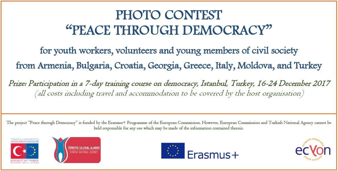 Proiectul „Pace prin Democrație” este un proiect marca Erasmus+ și susținut de Agenția Națională a Turciei. Organizațiile partenere: A.O. ”INVENTO” (Moldova); Armenian Progressive Youth (Armenia); Association Focus-European Center for Development (Bulgaria); Udruga “Impress” Daruvar (Croatia); Alternative Education Academy (Georgia); Youthfully Yours (Greece); Entrepreneurship & Social Economy Group (Greece); Young Effect Association (Italy).