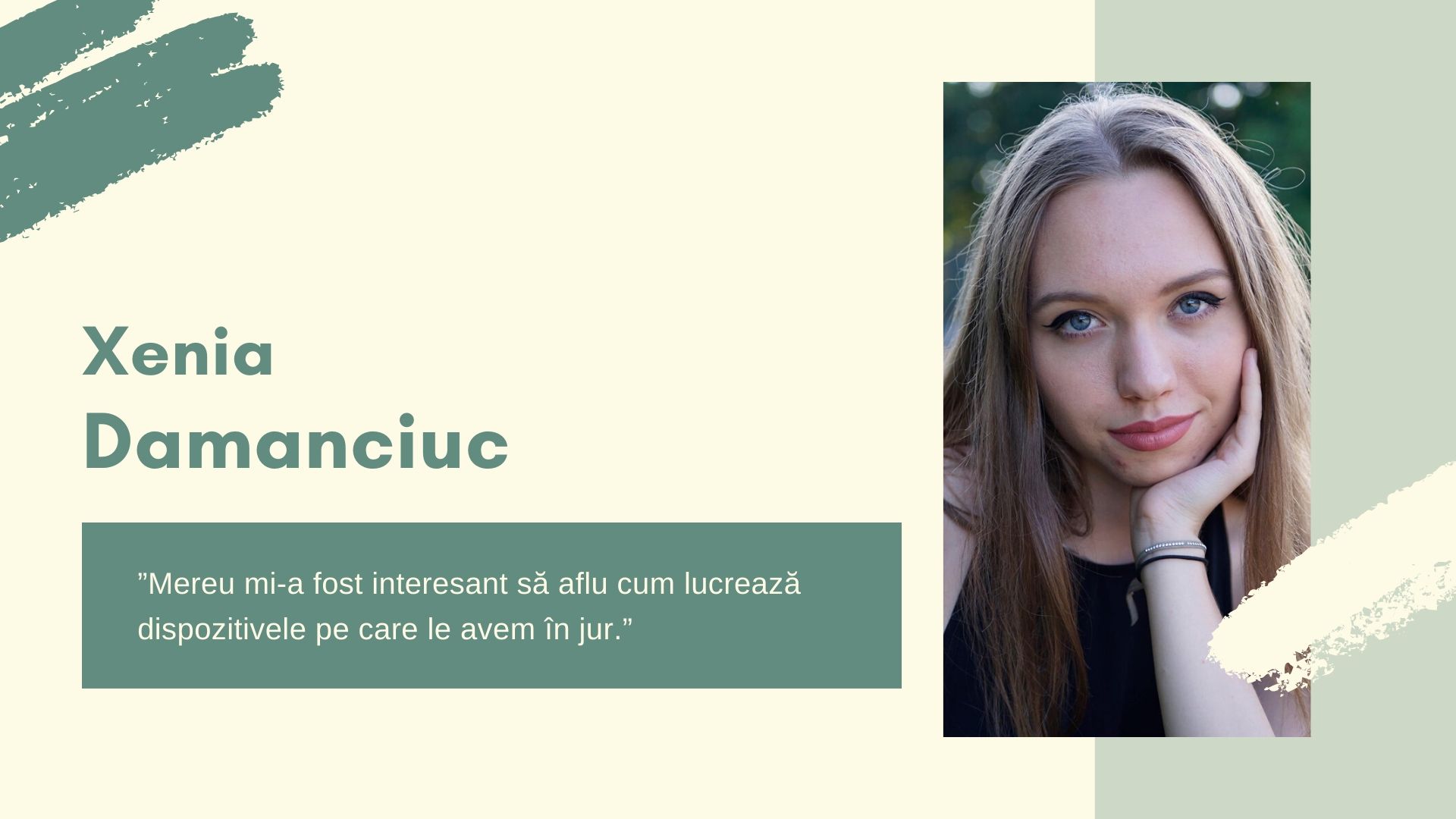 Xenia Damanciuc, este o tânără absolventă a Centrului de Excelență în Informatică și Tehnologii Informaționale, care a izbutit să se angajeze în compania în cadrul căreia a efectuat practica de producție. Astfel, îți propunem să o cunoști pe Xenia, fata pasionată de lumea IT-ului.