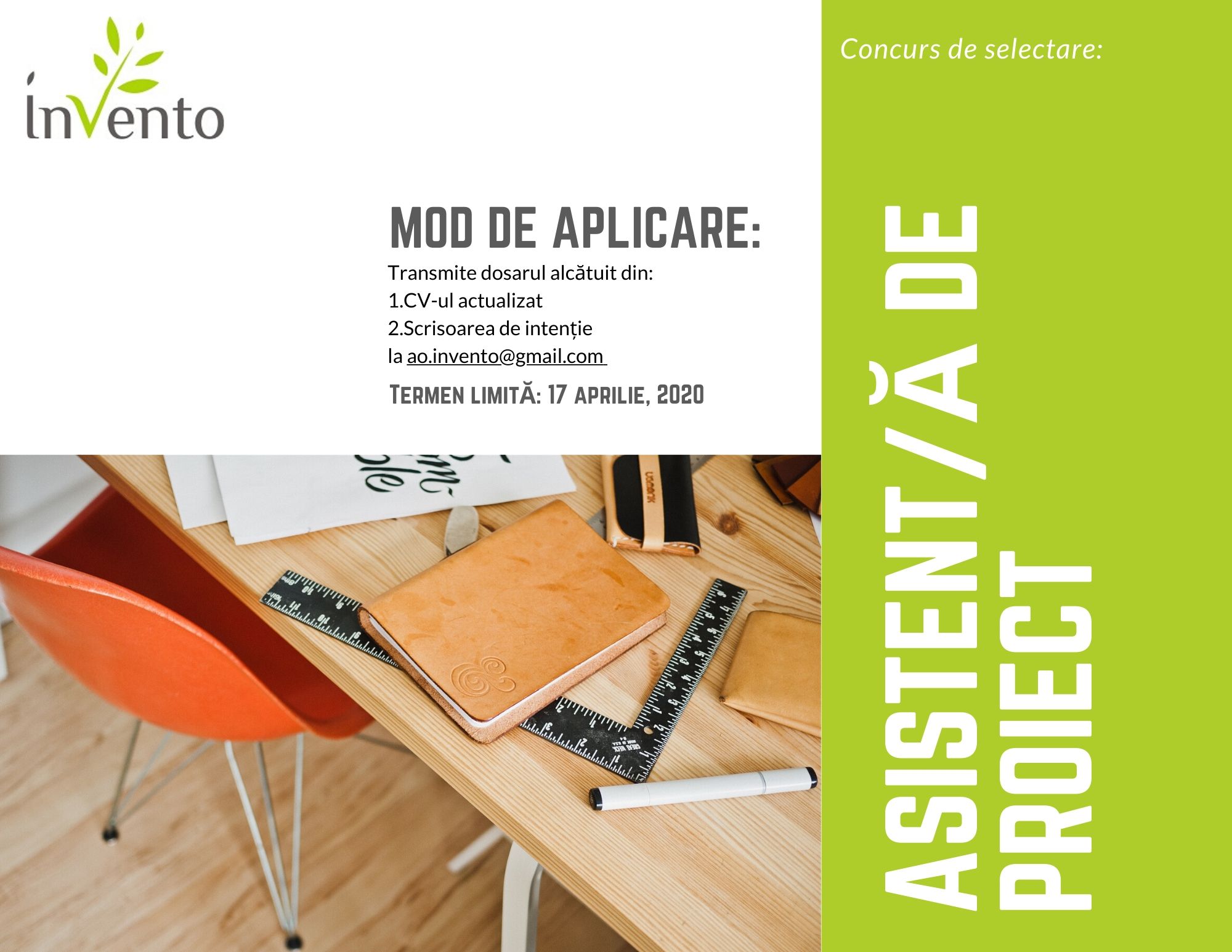 Organizația INVENTO angajează Asistent/ă de Proiect