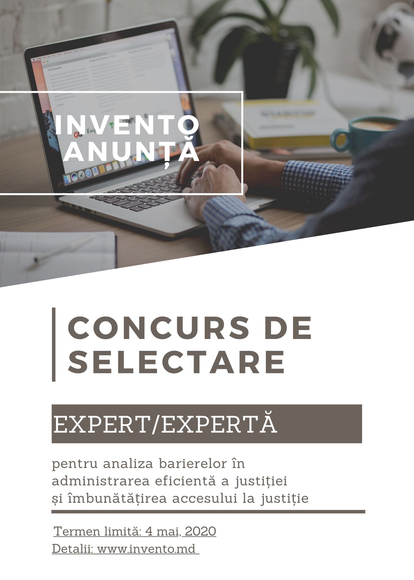 INVENTO selectează un/o expert/expertă pentru analiza barierelor în administrarea eficientă a justiției și îmbunătățirea accesului la justiție.