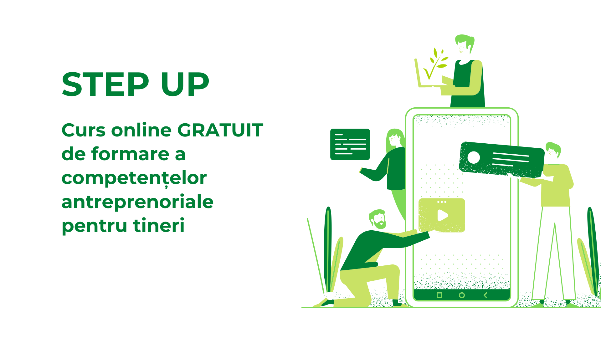 Cursul de antreprenoriat pentru tineri #StepUp urmărește formarea și perfecționarea culturii antreprenoriale în rândul tinerilor din Republica Moldova, plecând de la idei simple de afaceri la modul de structurare a modelului de business și oportunitățile existente de finanțare ale acestuia.