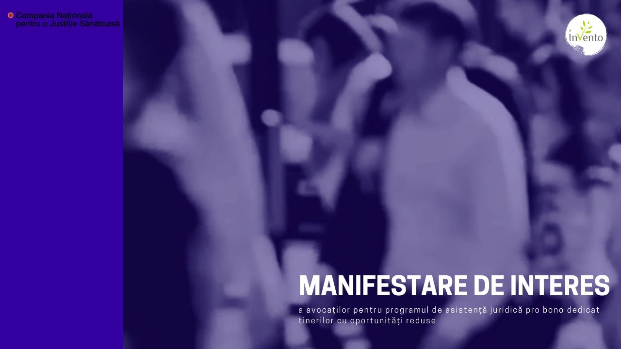 Suntem în căutarea profesioniștilor responsabili, cu înalt spirit civic, care sunt interesați să ofere cunoștințele și experiența lor pentru tinerii cu acces redus la justiție. În această toamnă, prin intermediul unui program outreach de asistență juridică, INVENTO va desfășura un program de asistență juridică primară, pro bono, pentru tinerii din 10 localități ale țării.