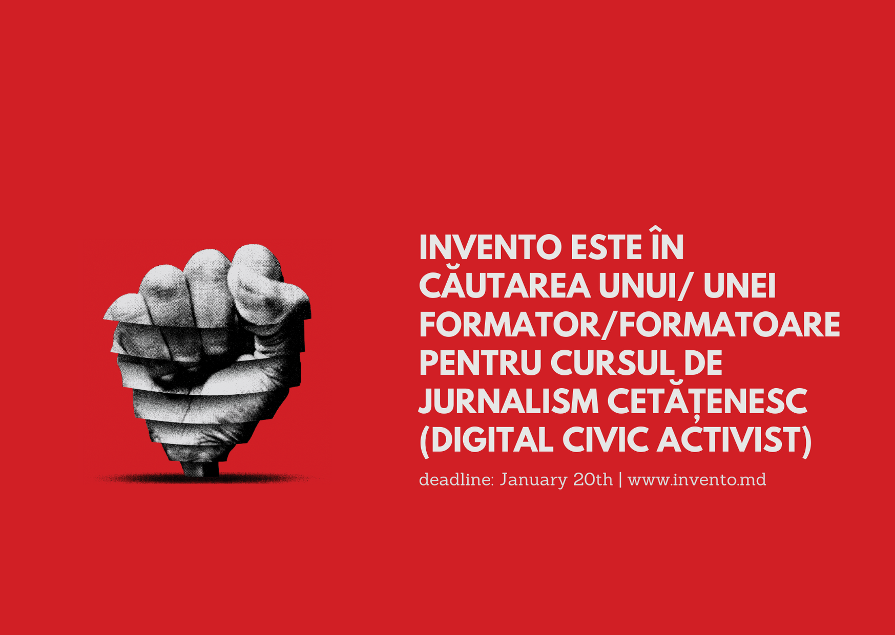 În acest sens, în vederea realizării obiectivelor de proiect și pentru a asigura vizibilitatea și realiza planul de comunicare, INVENTO este în căutarea unui/ unei Coach în Activism Civic.