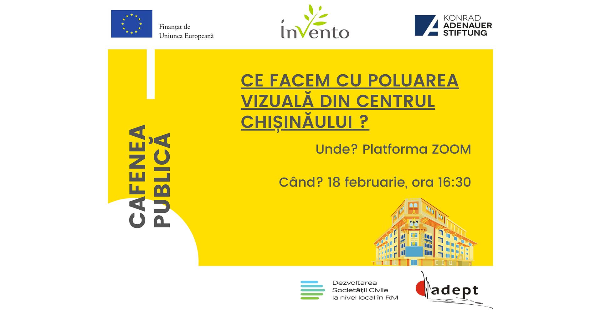 Preocupați de aspectul orașului în care trăiesc, doi tineri, Mihai Leșco și Teodora Drucec, au organizat la data de 18 februarie 2021 o discuție publică cu subiectul „Ce facem cu poluarea vizuală din centrul Chișinăului?”. Au fost prezenți consilierii municipali Roman Cojuhari și Dumitru Ivanov din partea fracțiunii PAS, Dumitrița Efremov, președintele A.O. UrbanLab, reprezentanți din rândurile agenților economici din domeniul publicității stradale și ai societății civile. Deși s-a discutat despre această problemă și potențiale soluții pentru aceasta, viceprimarul Victor Chironda, cât și reprezentanții Direcției urbanism, arhitectură și relații funciare nu au dat curs invitațiilor. Deși consilierii fracțiunii PSRM au fost și ei invitați, fracțiunea din care fac parte a venit cu inițiativa de a organiza un asemenea eveniment în format offline chiar în aceeași zi. S-a constatat că pentru rezolvarea acestei probleme, este nevoie de un regulament eficient cu privire la normele de afișaj și publicitate stradală care să conserveze centrul istoric al orașului, să ofere condiții egale pentru agenții economici din acest domeniu, fiind însoțit și de un cod vizual care să reglementeze regulile de afișare a firmelor și publicității pe clădiri, cu precădere pe monumentele istorice.